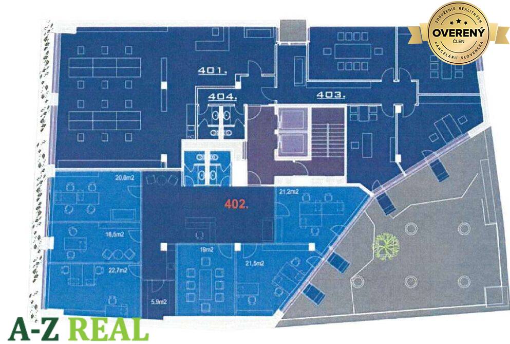 3. poschodie (č. 402) výmera: 187,1 m² + dva menšie balkóny